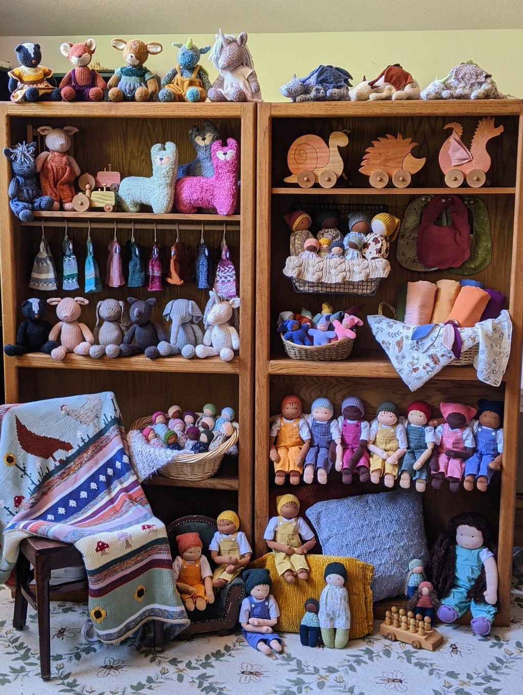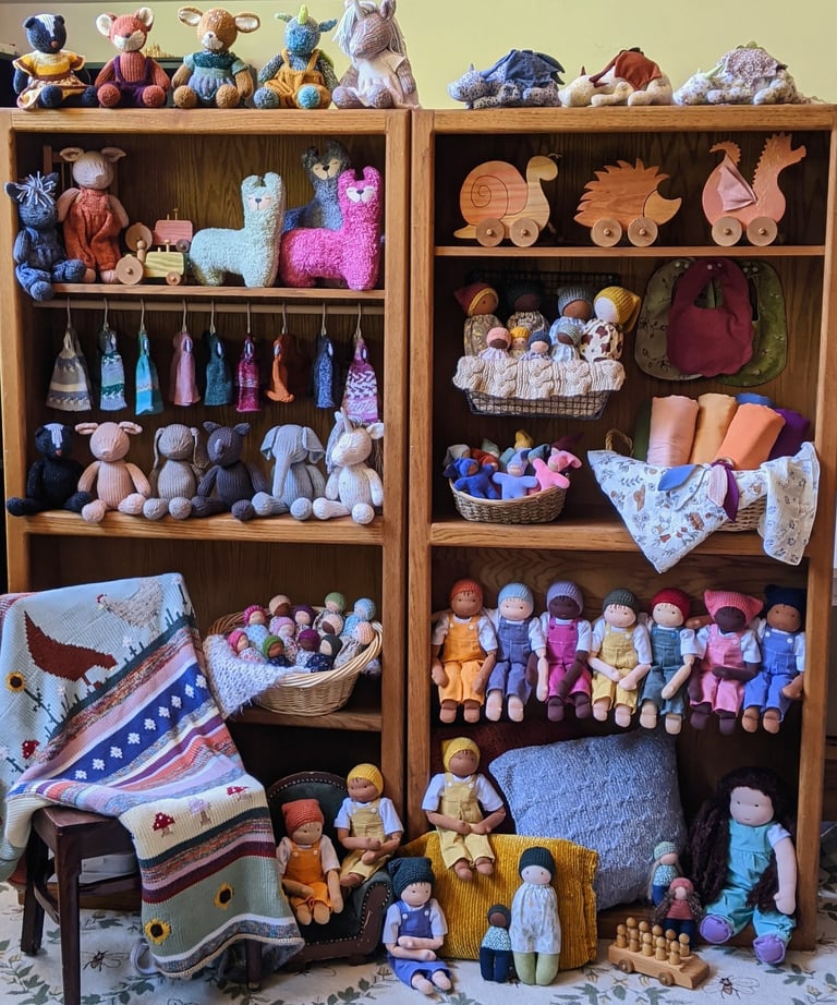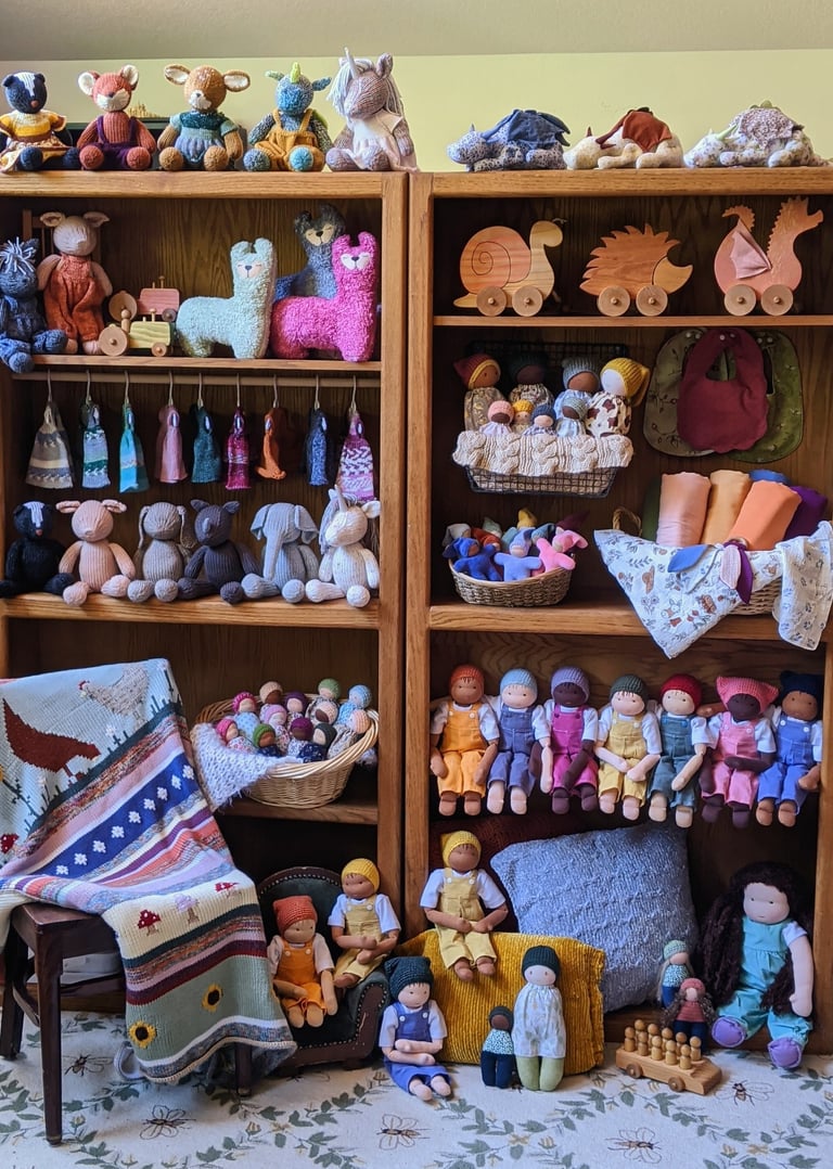 Our work is deeply rooted in the values of craftsmanship, sustainability, and intentional living. Each item we create- from our one-of-a-kind Waldorf dolls to unique wooden toys and essential baby goods- is thoughtfully designed and carefully handcrafted.
